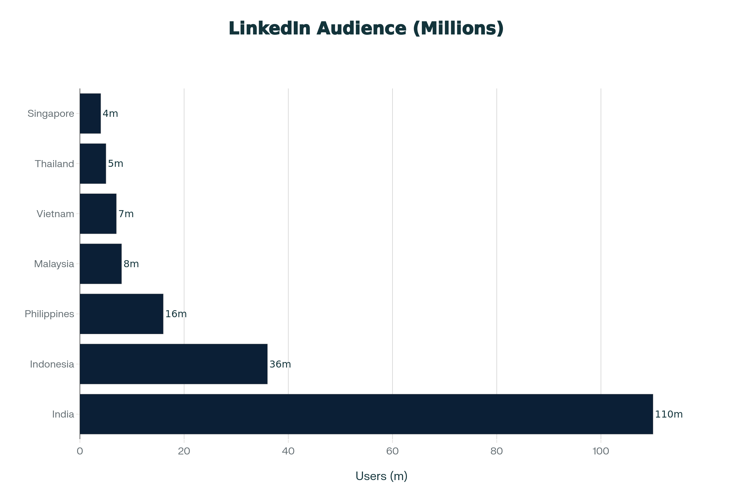 Before you send a single connection request, you must validate the size of your addressable market on LinkedIn. While LinkedIn is dominant globally, its penetration varies wildly across Asia.